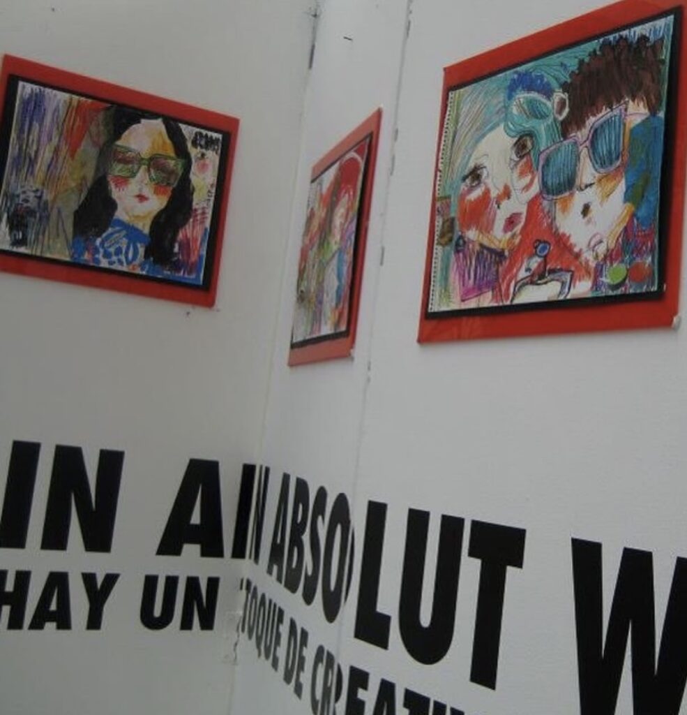 La propuesta consistió en trabajar dentro de una caja de cristal transparente, que funcionaba como mi estudio temporal. En este espacio, los transeúntes podían observar tanto algunas de mis obras expuestas como a mí misma desarrollando mi trabajo en la mesa de dibujo. Este proyecto transformó un espacio cotidiano en un escenario artístico abierto, donde la obra, el artista y el espectador convivieron sin barreras, haciendo visible la intimidad del acto de crear.