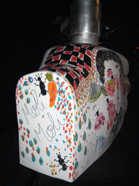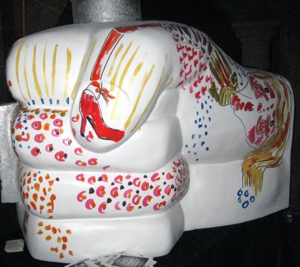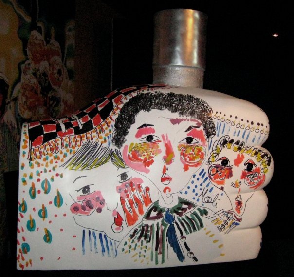 Mi intervención consistió en dialogar con esa energía contenida en el cuerpo, habitando la superficie de la escultura con mis personajes. Ellos, con su carga expresiva y simbólica, se entrelazaban con la forma del puño, generando un contrapunto entre la dureza del gesto y la sutileza de la narrativa ilustrada.